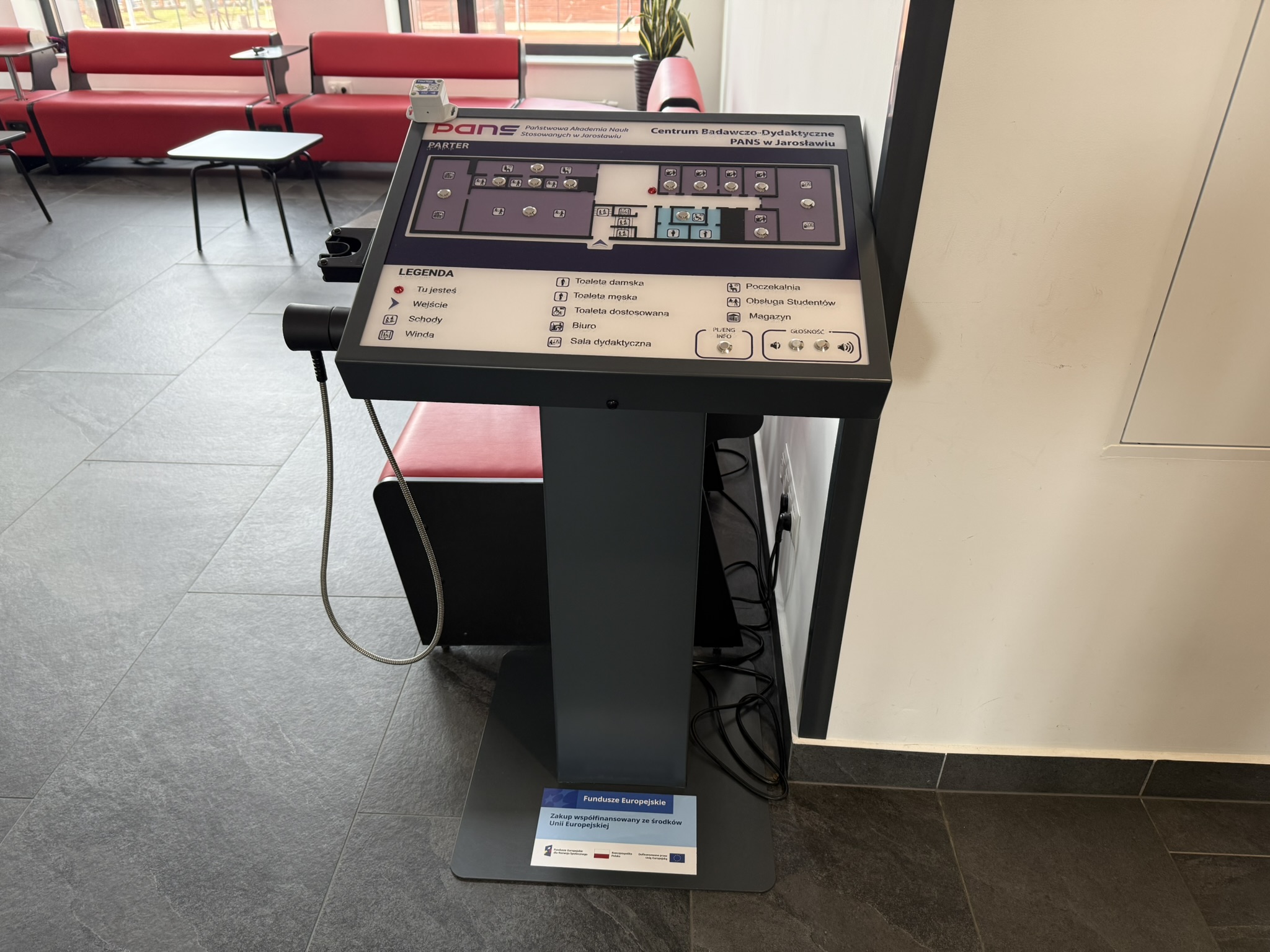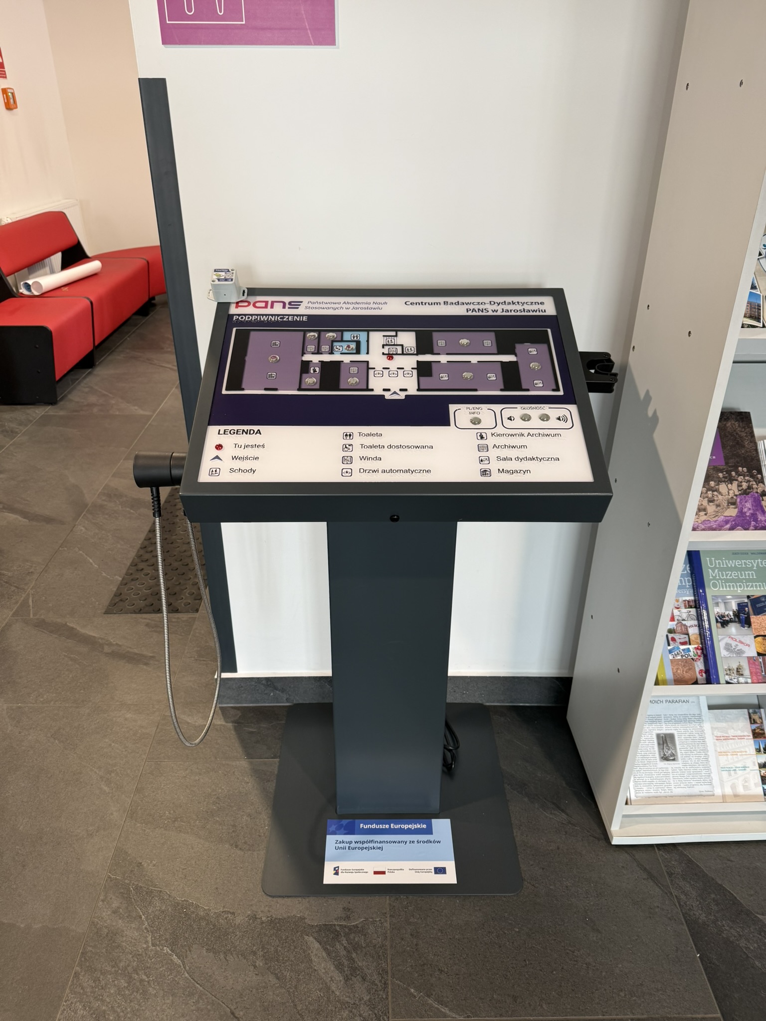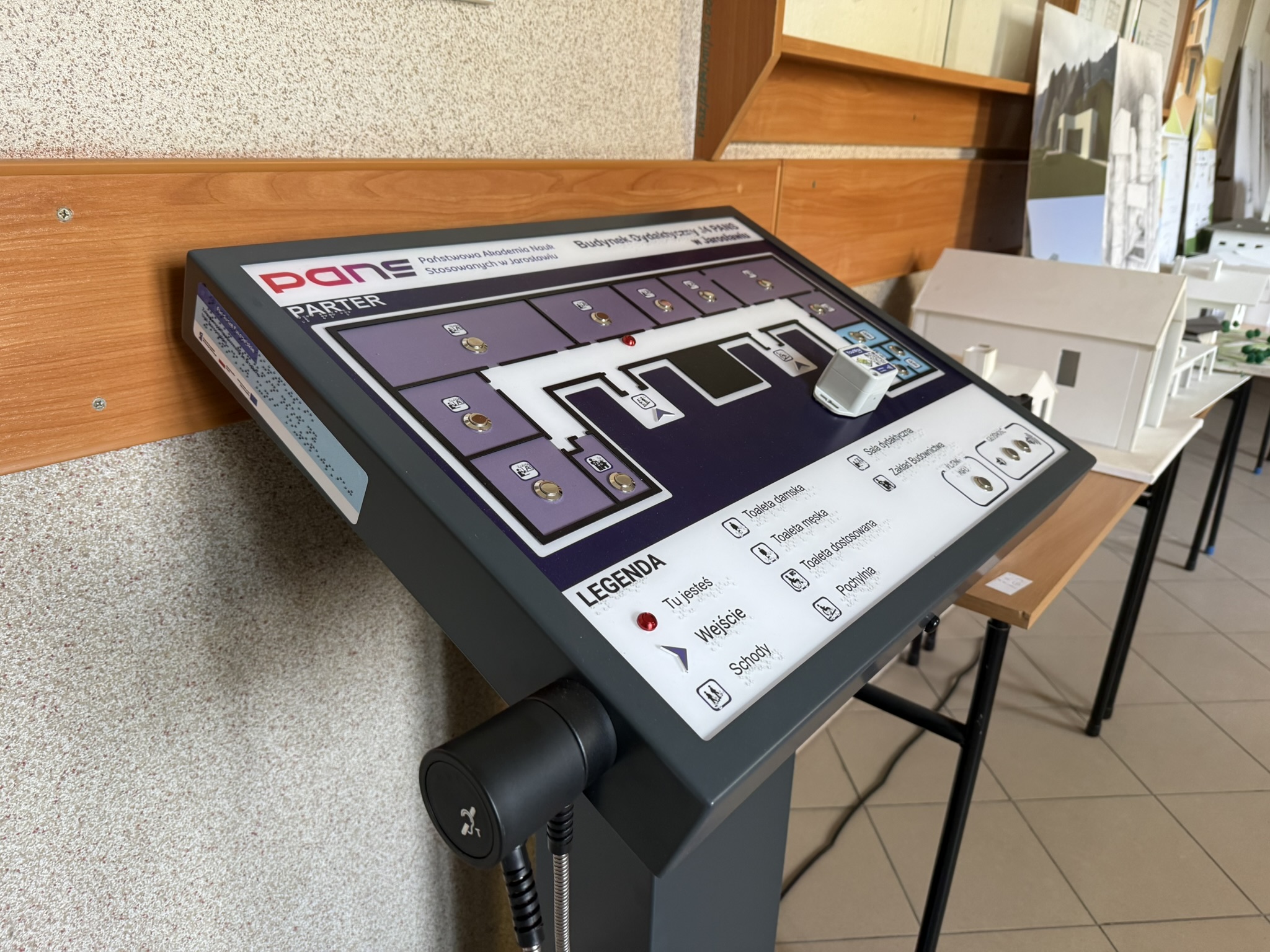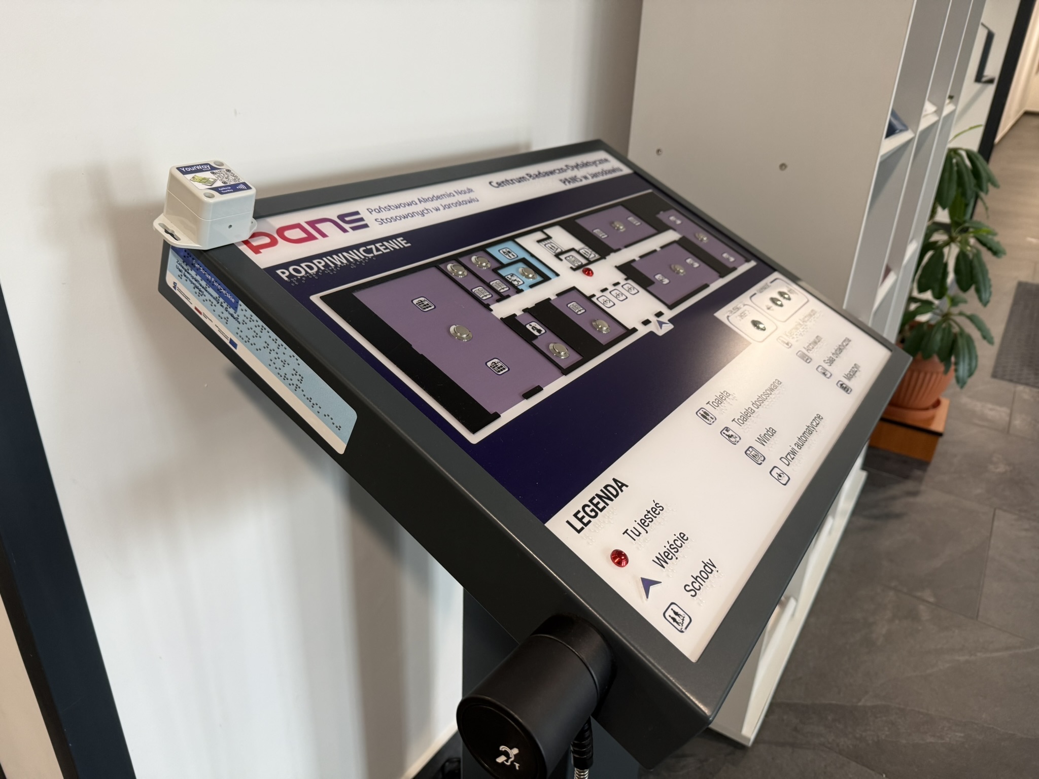 W ramach realizacji projektu pn. „Uczelnia otwarta i przyjazna dla osób ze specjalnymi potrzebami edukacyjnymi” uczelnia wzbogaciła swoją infrastrukturę o nowoczesne rozwiązania wspierające osoby z niepełnosprawnościami wzroku.