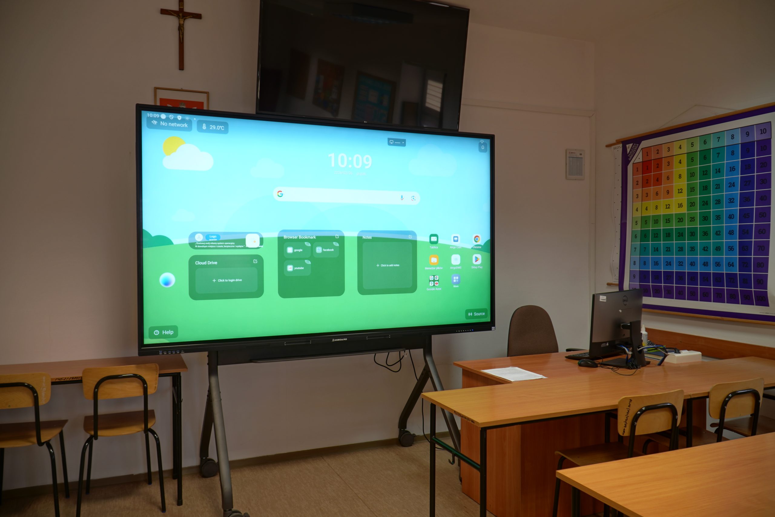 Zakup obejmował również monitor interaktywny z elektrycznym statywem jezdnym, który stanowi wszechstronne wsparcie w prowadzeniu zajęć dydaktycznych, warsztatów oraz ćwiczeń praktycznych. Urządzenie umożliwia dynamiczną pracę z treściami edukacyjnymi, materiałami wizualnymi oraz interaktywnymi ćwiczeniami, zarówno w pracy ze studentami, jak i z grupami dzieci. Mobilność monitora pozwala na elastyczne aranżowanie przestrzeni dydaktycznej, a interaktywna forma zajęć sprzyja zaangażowaniu, współpracy oraz aktywnemu uczeniu się.