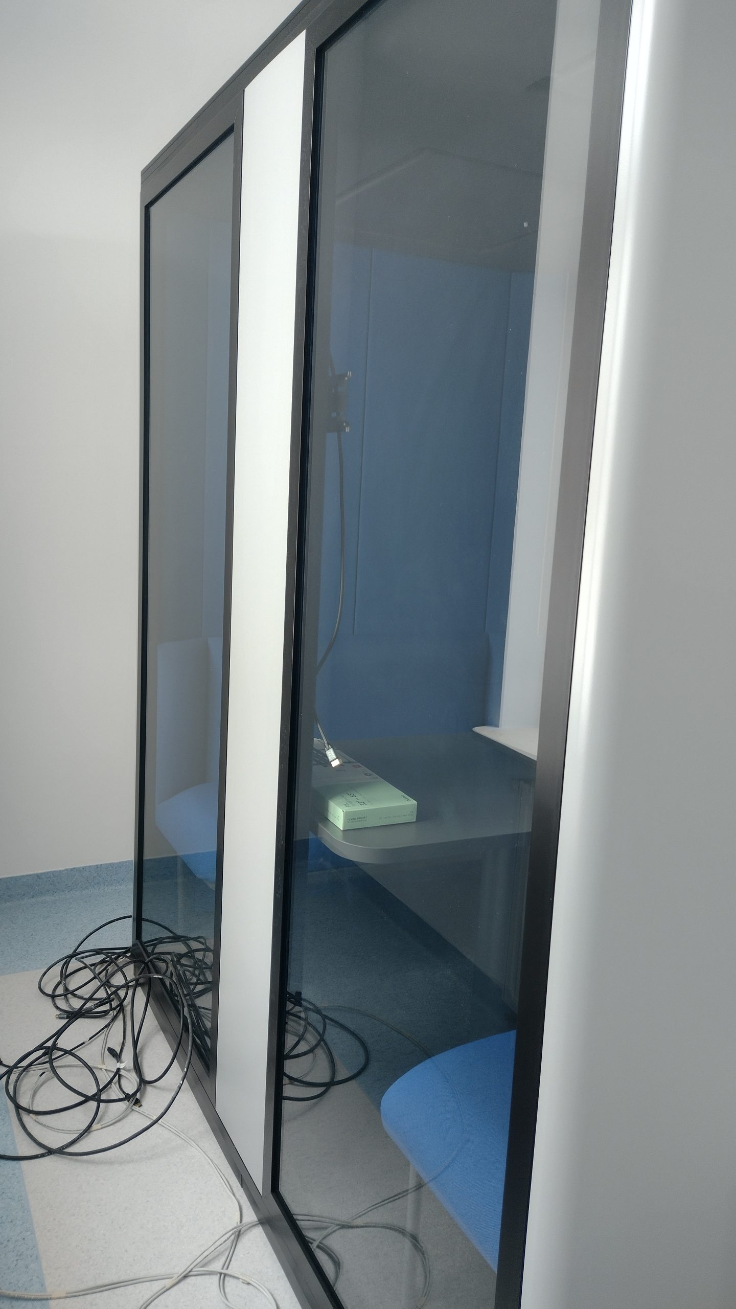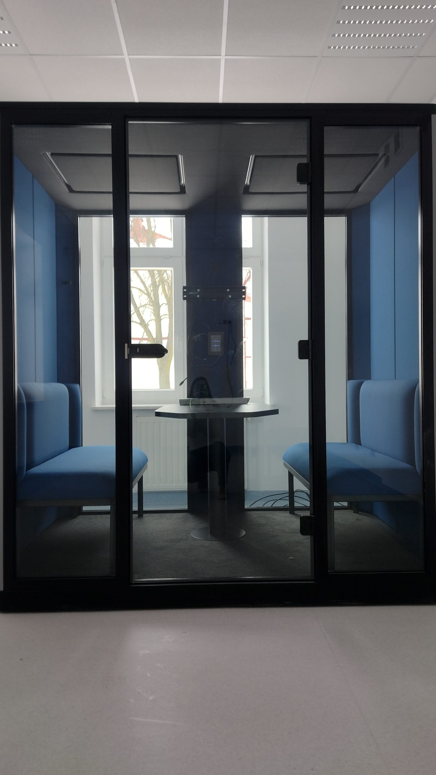 W ramach realizacji Zadania 3. zakupiono akustyczną budkę do spotkań, stanowiącą nowoczesną i funkcjonalną przestrzeń do nauki oraz współpracy dla studentów kierunków zarządzanie oraz finanse i rachunkowość.